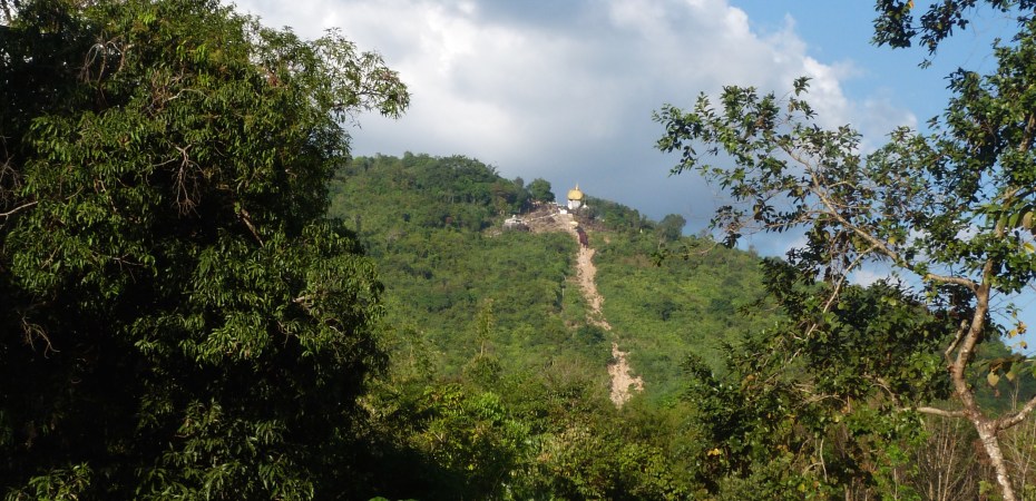Yes! This short stretch feels like the first ‘real’ cycling kilometres in Myanmar, although the cycling in Yangon was serious. But we are actually travelling now! Road conditions are good, it is not too busy and within one hour we reach Golden Sunrise Resort, a few kilometres before Kinpun. Kinpun is the village well known for the Golden Rock. Yes, a golden rock on top of a mountain.