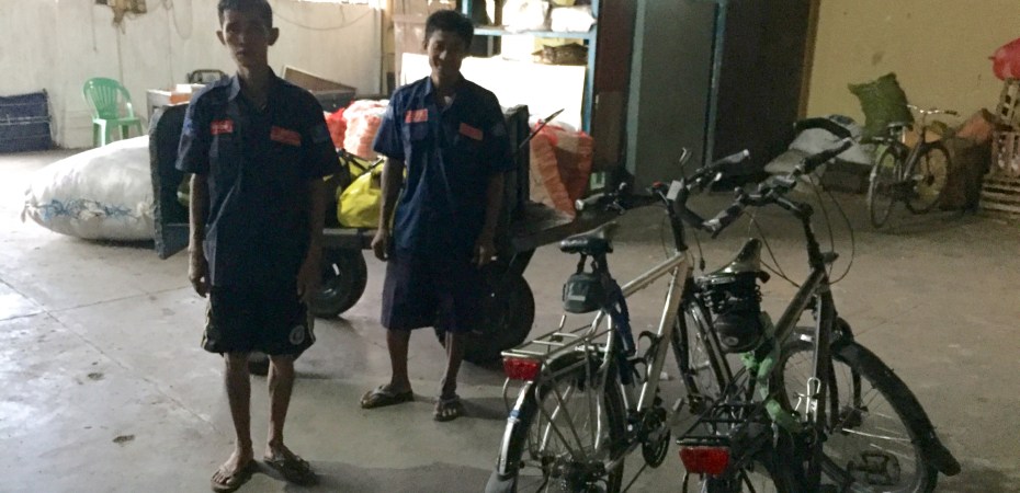 We leave the guesthouse around 5.30 am to arrive well on time for the 7.15 am train. Cycling the city that is getting ready for another hot, busy, traffic congested day feels like being part of a well kept secret: things are moving slowly, there is plenty of space on the roads and the temperature is highly agreeable. Also, we see scavengers, people we never saw during the later hours. We reach the train station in 30 minutes (during the daytime it took us us over an hour) and we bring our bikes to the cargo entrance of the station. They are weighted and put in the cargo carriage, to be unloaded when we reach Kyaiktho.